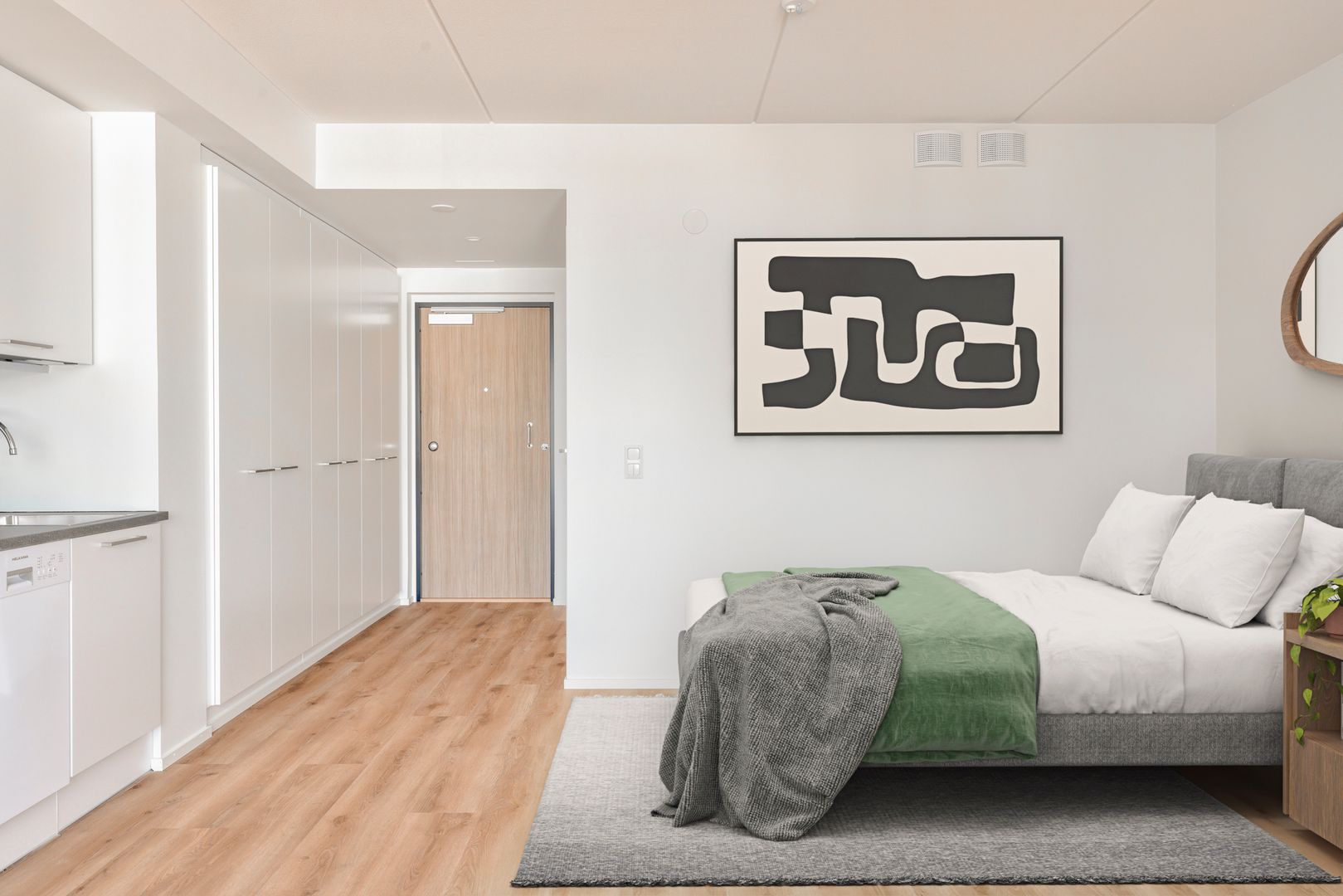 Bostadsstiftelsen hyr ut ett antal splitternya lägenheter med enorma balkonger, förmånlig hyra samt fin utsikt och närhet till grönområden. Lägenheterna är ljusa och har smarta planlösningar som får din lägenhet att kännas större än vad den är. På innergården finns en lekplats för barn och uppe i åttonde våningen har vi byggt en takbastu med otroligt fin utsikt.