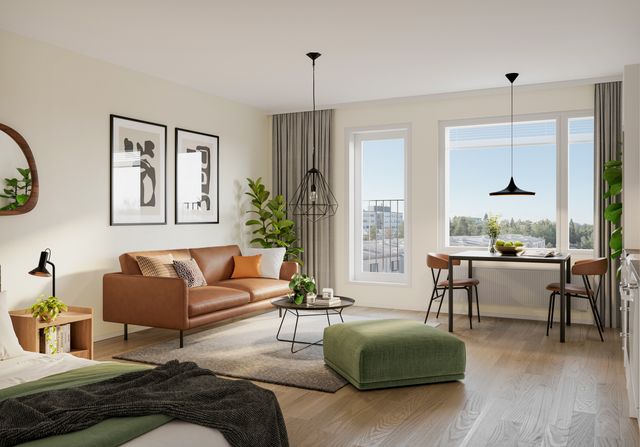 Bostadsstiftelsen-säätiö vuokraa joukon upouusia asuntoja, joissa on valtavat parvekkeet, edullinen vuokra sekä kaunis näköala ja läheisyys viheralueisiin. Asunnot ovat valoisia ja niissä on fiksut pohjaratkaisut, jotka saavat asuntosi tuntumaan suuremmalta kuin se todellisuudessa on. Sisäpihalla on leikkipaikka lapsille ja kahdeksanteen kerrokseen olemme rakentaneet kattosaunan, josta on upea näköala.